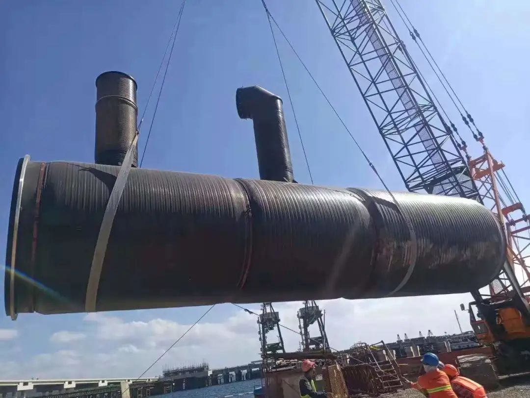 纳川与设计单位一道深入比选、研发适合海底铺设的新品。依托强大的研发经验,纳川积极提供材料性能、管材结构形式、特殊配件及施工方案的验证支持,从超大口径和超高刚度维度实现全新突破,将HDPE缠绕结构壁B型管成功升级为适合海中铺设的理想管材,开启海洋取排水管材应用的新篇章。