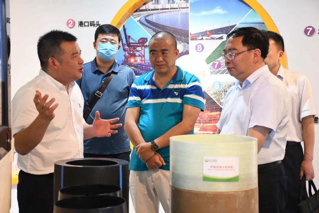 蔡主席一行首先参观了公司展厅,傅义营副总经理介绍了公司企业文化、发展历程、生产经营以及高密度聚乙烯(HDPE)缠绕结构壁管、聚酯增强复合顶管、连续缠绕玻璃纤维增强管等核心产品技术。蔡主席细心听取各项介绍,了解公司生产经营和技术攻关情况,对纳川股份取得的各项发展成果给予充分肯定。
