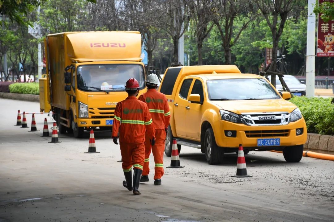 夏季的市区酷热难耐,在洛江双阳街道上,行人都很稀少,在写着“纳川股份”的清淤车旁,几名工作人员穿着工作服,正进行管网清淤疏通工作。
