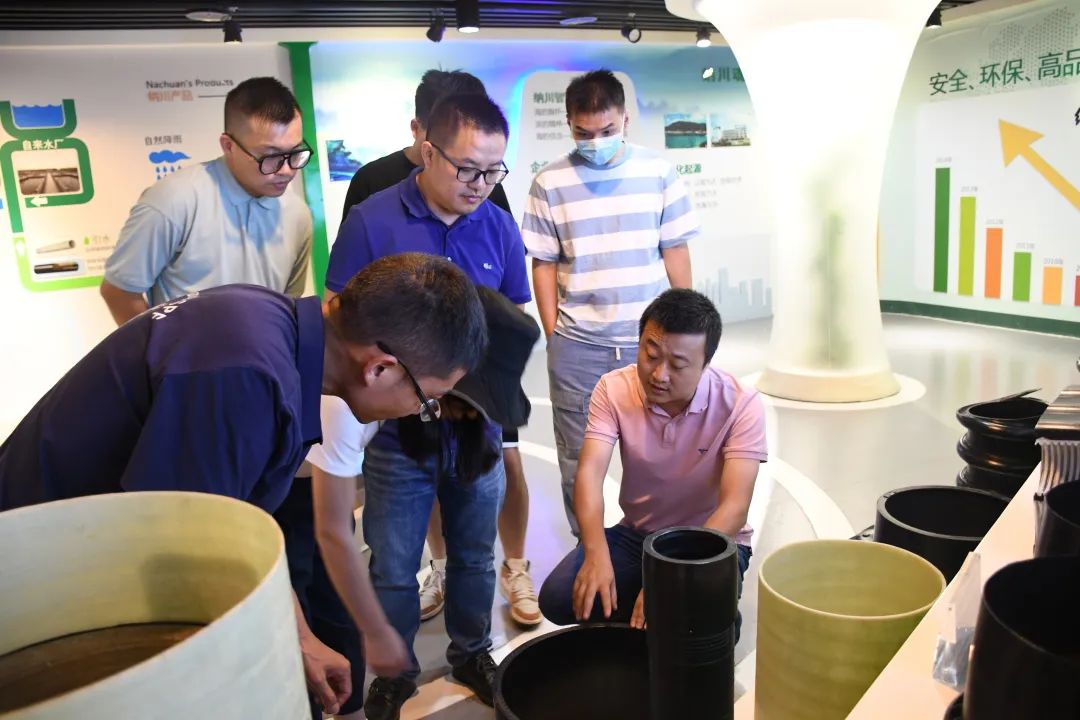 游先辉总经理一行参观了纳川股份总部展厅,纳川股份能源交通国际事业部总监严立威介绍了公司发展历程、企业文化、获得荣誉,对公司高密度聚乙烯(HDPE)缠绕结构壁管、钢骨架聚乙烯(PE)塑料复合管、聚酯增强复合顶管等产品进行讲解。