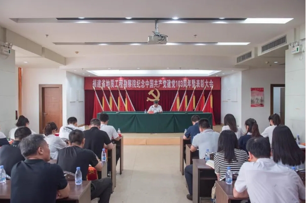 为庆祝中国共产党成立103周年,表彰先进典型,激励担当作为,6月28日,省地质工程勘察院召开庆祝建党103周年暨“七一”表彰大会。全院在家党员、中层以上干部、离退休党员代表等近80人参加会议。院党委书记卢贤锥主持会议并讲授专题党课。