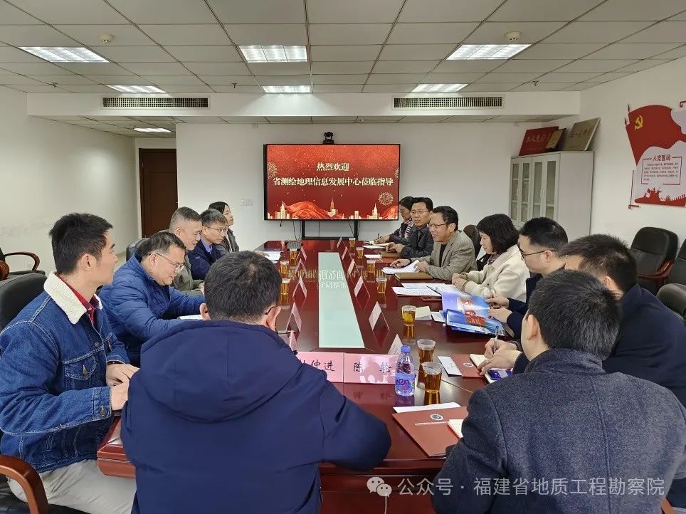 1月7日,福建省测绘地理信息发展中心党组成员、副主任锜言寿一行到省地质工程勘察院地质灾害重点实验室调研科技创新平台建设工作,省工勘院副院长、总工程师、地质灾害重点实验室常务副主任柳侃参加座谈。