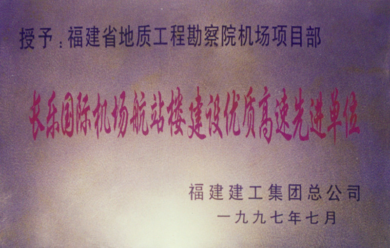 [1997]院获"长乐国际机场航站楼建设"优质高速先进单位