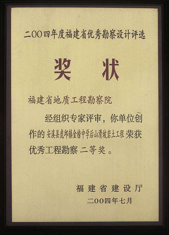 [2004]2004年安溪县虎邱镇金榜中学勘察二等奖