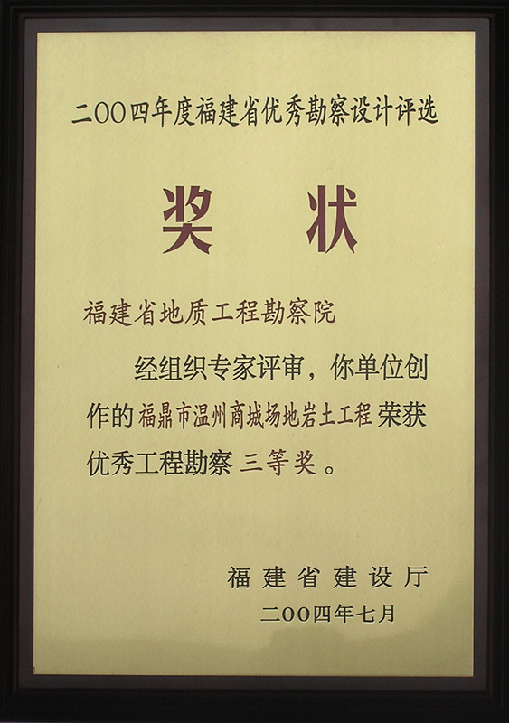 [2004]2004年福鼎市温州商城岩土工程勘察三等奖