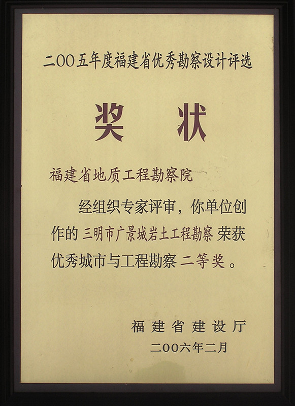 [2006]2006年三明市广景城岩土工程勘察二等奖
