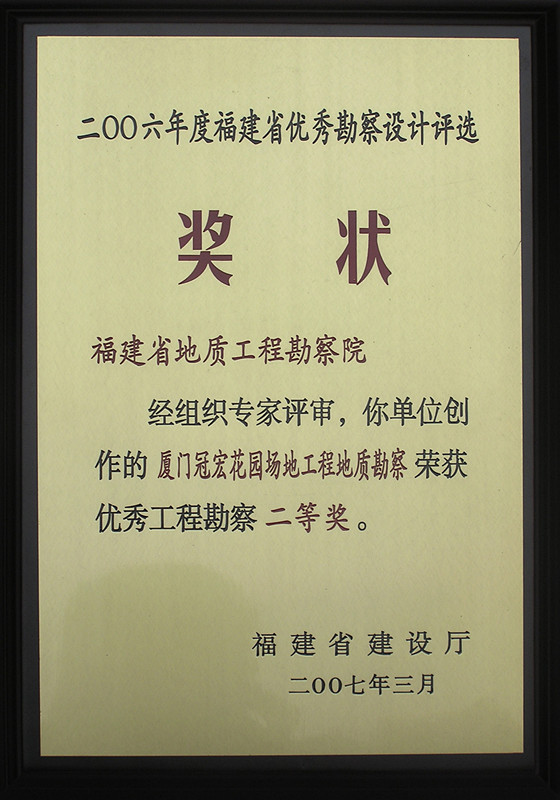 [2007]2006年厦门冠宏花园场地工程勘察二等奖