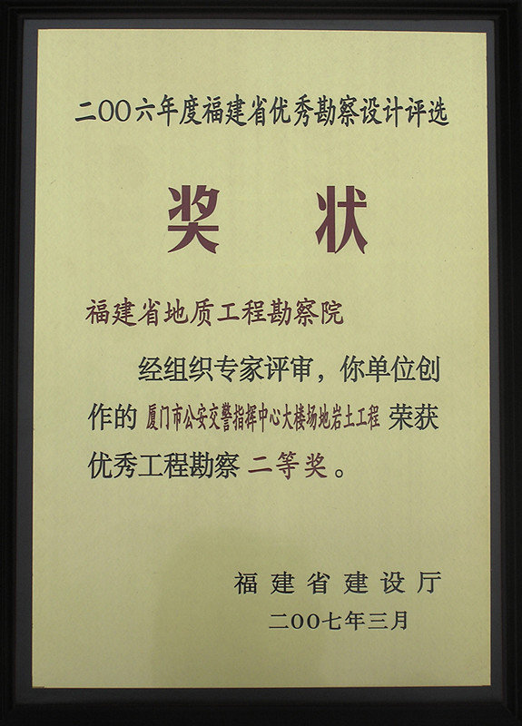 [2007]2006年厦门市公安指挥中心大楼场地岩土工程勘察二等奖
