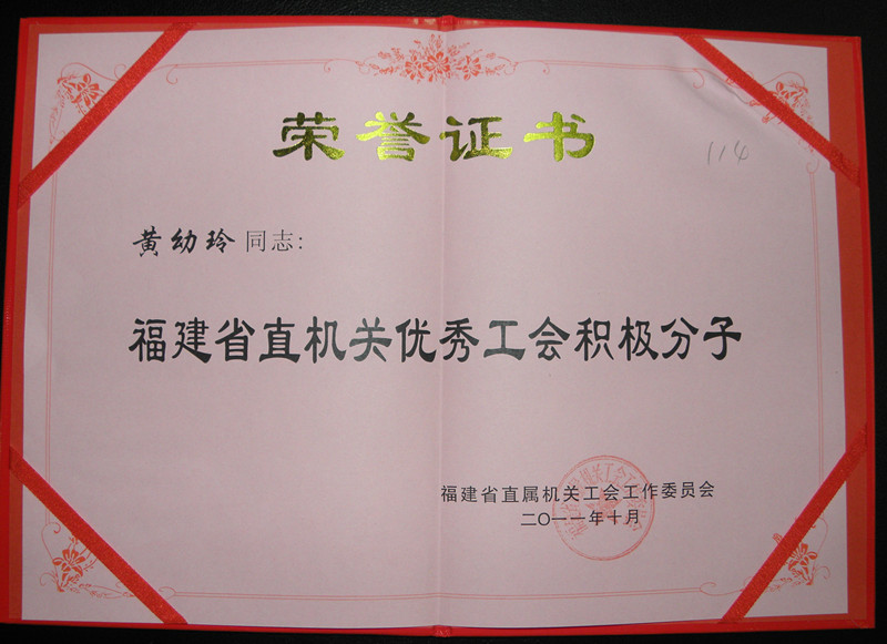 [2011]福建省直机关优秀工会积极分子(黄幼玲)