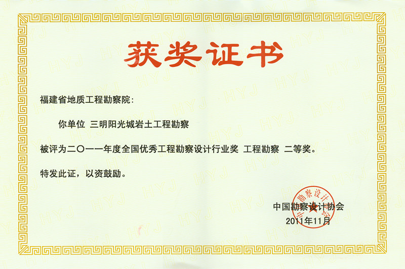 [2011]三明阳光城获得2011年度全国工程勘察二等奖