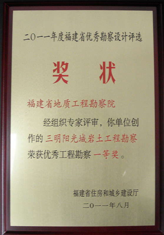 [2011]三明阳光城荣获省优秀工程勘察一等奖