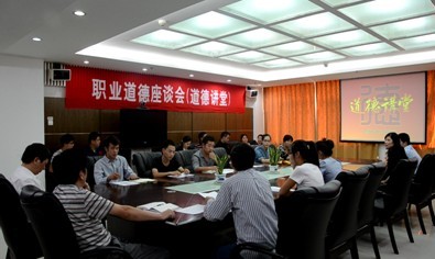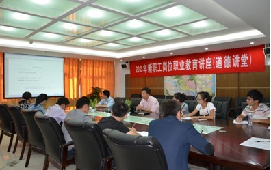 省工勘院针对新参加工作职工和院内青年职工的不同特点,于近日组织了两期道德讲堂。针对新参加工作的职工,举办了以介绍工勘院院史、规章制度、福利待遇、三光荣精神、安全生产、职业道德规范等为主要内容的道德讲堂,让新参加工作的职工理解什么是“三光荣”精神,在工作中要诚实做人、踏实做事,坚守职业道德,诚信从业;而针对院青年职工的特点,以“爱岗敬业、诚实守信、奉献社会、素质修养”为主题,团委对近年来开展的例如无偿献血、关爱智障儿、导师带徒、团结互助、读书活动、地灾救援等工作进行了总结和拓展,会上大家互相交流工作经验,畅谈职业操守和诚信从业的心得,合唱了“勘探队员之歌”,在激扬豪迈的音乐中,青年职工们深深领会到了“事业为荣,职业崇高,忠于职守,积极奉献”的积极意义,并为从事地质工作而自豪。