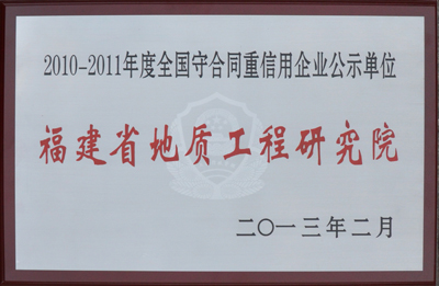 近日,福建省地质工程研究院荣获国家工商行政管理总局2010-2011年度“全国守合同重信用企业”称号,据悉这是该院第二次获得该荣誉。