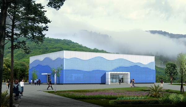方案一设计理念来源于生活,体现“山水印象”,山的剪影、水的波浪作为设计元素与建筑完美结合,虽为人做,宛若天开。