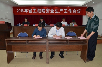近日,省工勘院召开2016年度安全生产工作会议。张毅副院长在会上汇报了2015年度院安全生产工作情况,提出2016年安全生产工作计划,同时公布了院关于调整安全机构人员的安排。卢贤锥院长传达局安全工作会议精神,并就院安全生产工作情况作了讲话,提出三个要求:一是高度重视,严肃对待;二是明确责任,履职尽责;三是加强学习,确保安全教育到位。会上还表彰了标准化运行的考评达标的二级单位。最后,卢院长与下属单位签订2016年度安全生产目标管理责任书,把安全生产责任通过责任书的形式予以明确,使安全管理工作落实到每一个二级单位、每一个职工身上。