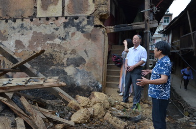 5月11日,省工勘院办公室主任林金燥、党群办李群等人带着大米、食用油、牛奶、被子等价值一千多元的生活物品和三千元慰问金,前往居住在闽侯鸿尾村的退休职工苏光幌处进行慰问。据了解,5月10日晚上,苏光幌家中不幸遭遇火灾,在较短的时间内整栋房屋化为灰烬,除了体弱多病的苏光幌夫妻及时逃出外,整间楼房变成废墟,未能抢出任何值钱的物品,这对一个退休老人来说,今后的生活困难是可想而知的。省工勘院领导一得知此事,立即组织人员上门慰问,并为他的灾后重建建言献策。