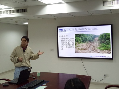 省地勘院地质灾害重点实验室积极开展学术交流,探索科研管理新思路。11月4日,河海大学土木与交通学院安全与防灾工程研究所所长陈育民教授介绍了目前岩土工程与防灾减灾方面的最新研究及成果转化进展情况,并分享了基金项目申报、发明专利申请等方面的经验。在深入交流中,双方探讨了充分发挥各自优秀人才及先进设备效用、共同开展科研项目的可行性。12月5日,成都理工大学环境与土木工程学院、地质灾害防治与地质环境保护国家重点实验室余斌教授则作了“泥石流滑坡精细化预报”学术讲座。他结合丰富的实例,详细介绍了不同类型泥石流及滑坡灾害的精细化预报模型,其中重点讲解了模型参数的确定和取舍。余教授还对申请国家自然科学基金有关注意事项及成功经验作了无私分享,并与实验室成员进行热烈交流。参加交流活动的还有省工勘院、省建科院相关技术人员、河海大学在读博士、福州大学在读硕士等30余人次。