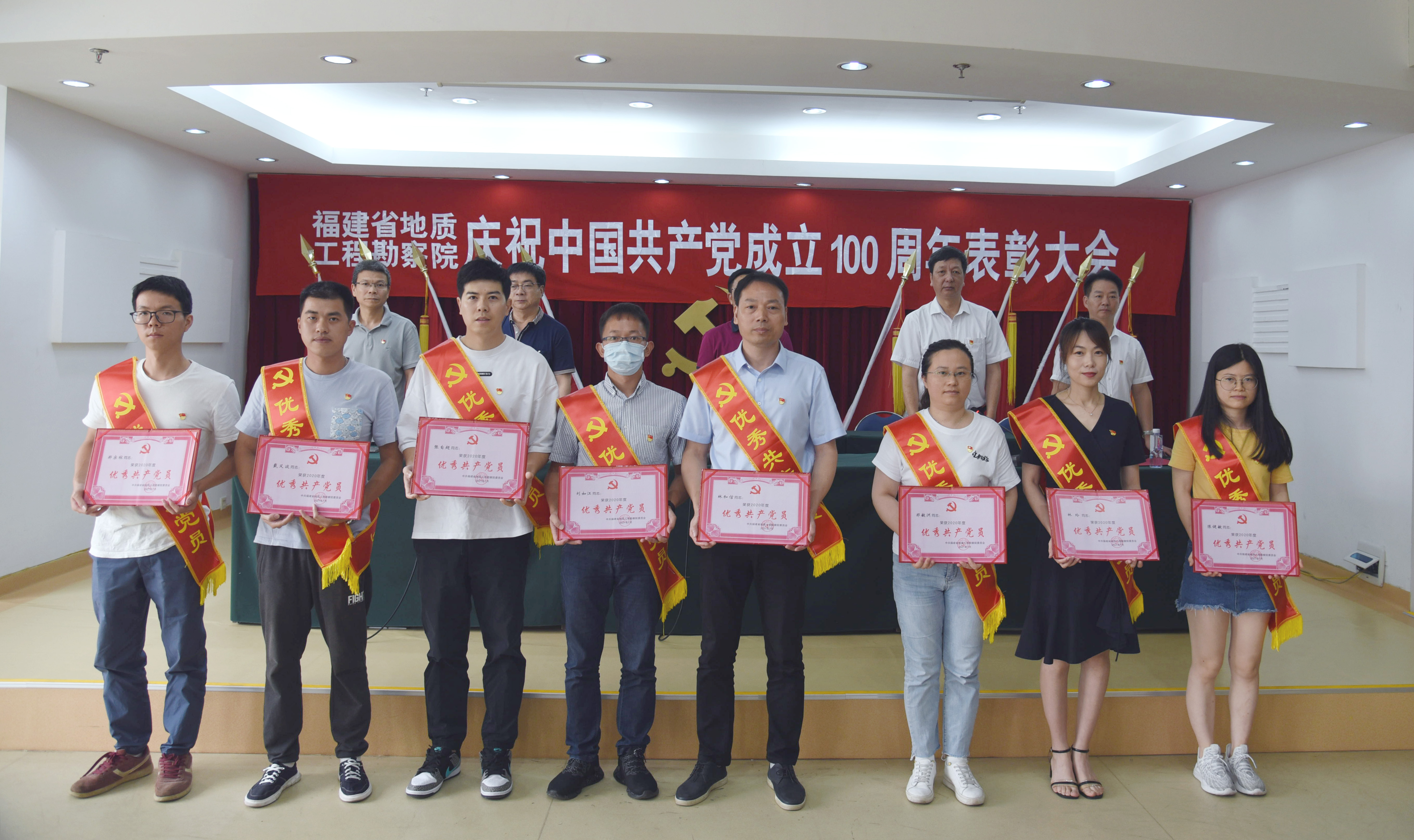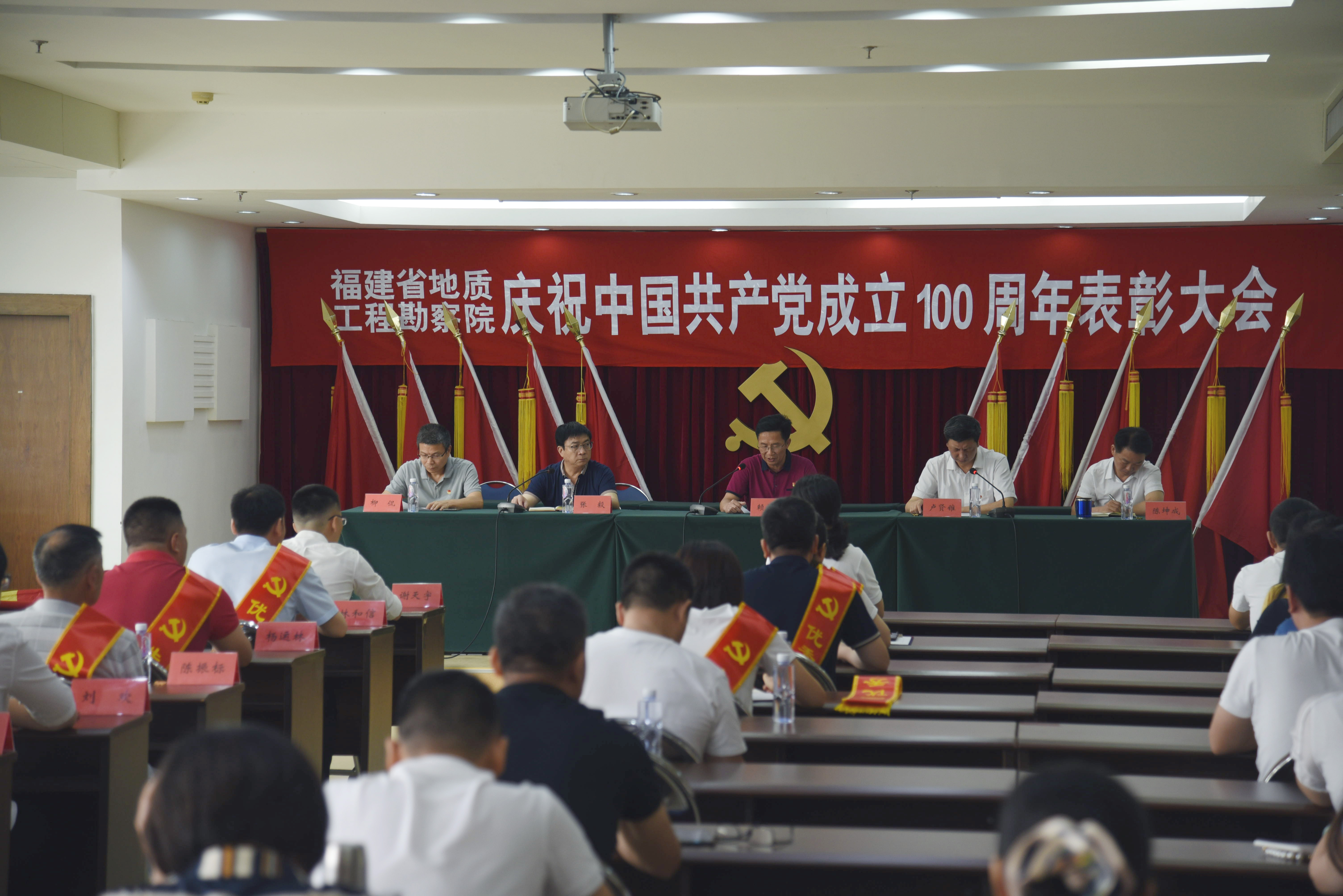 6月29日上午,省地质工程勘察院召开庆祝中国共产党成立100周年表彰大会,院部管理科室全体党员、二级单位党政负责人及支部委员、退休党支部书记及委员共计60人参加会议,院党委副书记卢贤锥院长主持会议。