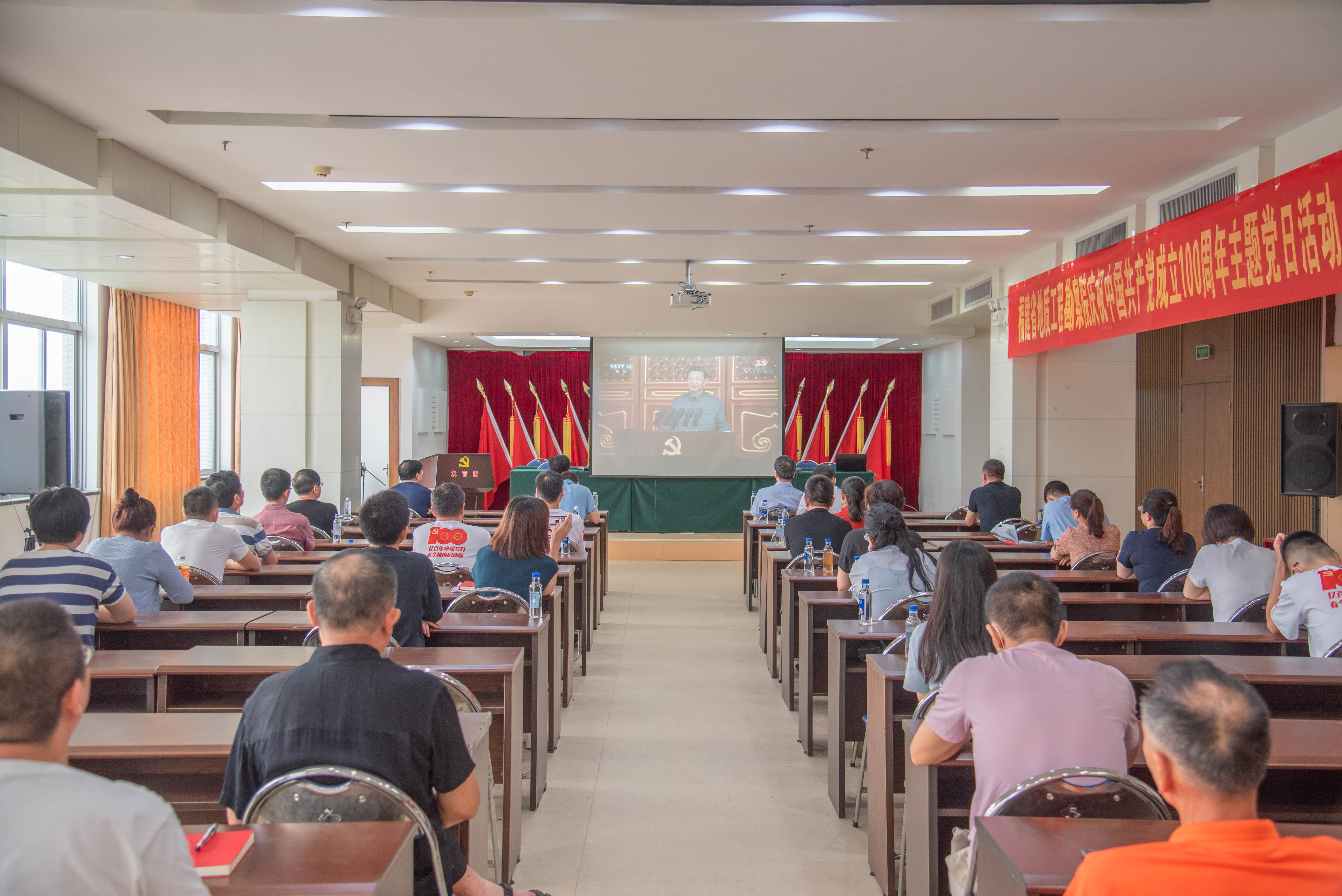 7月1日上午,庆祝中国共产党成立100周年大会在北京天安门广场隆重举行。中共中央总书记、国家主席、中央军委主席习近平发表重要讲话。省地质工程勘察院党委组织院部管理科室全体党员、院属各党支部书记、委员等60余人在院部19楼多媒体室集中收看电视直播,离退休党员干部分别通过电视、网络、广播等多种渠道收听收看,共同聆听了习近平总书记重要讲话。