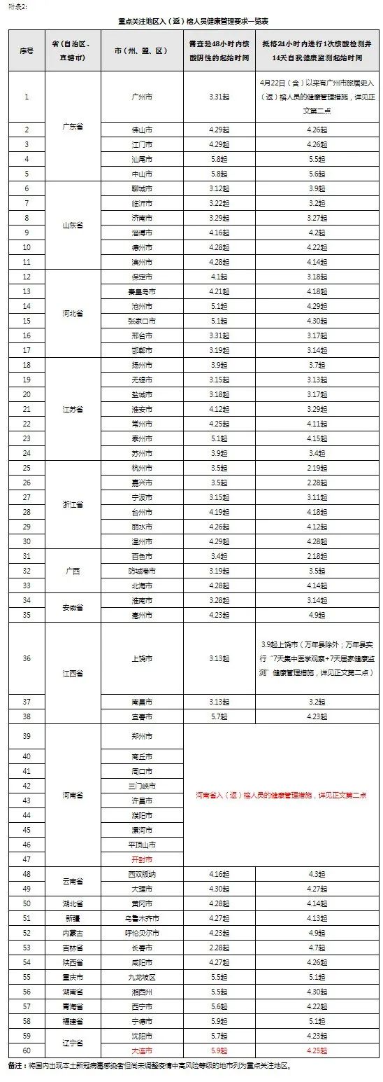 一、我市对从高、中风险地区以及重点关注地区入(返)榕的人员按规定采取健康管理措施,具体要求详见附表。