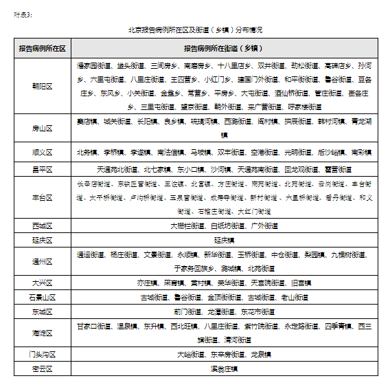 3.北京报告病例所在区及街道(乡镇)分布情况