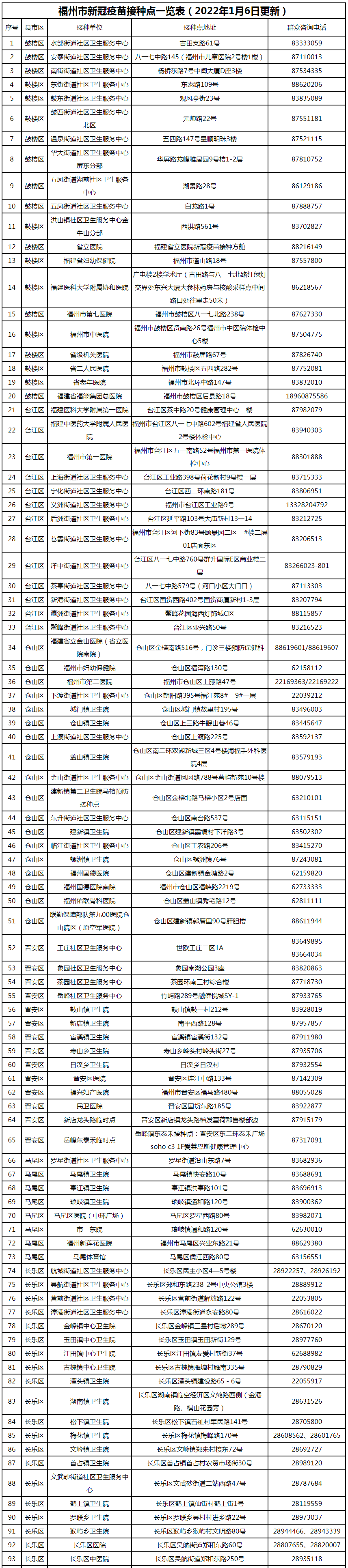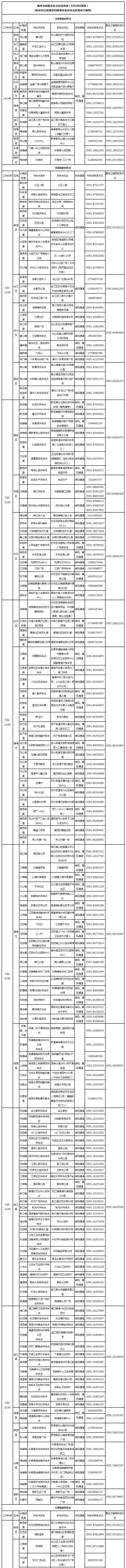 福州市核酸检测采样点位信息表