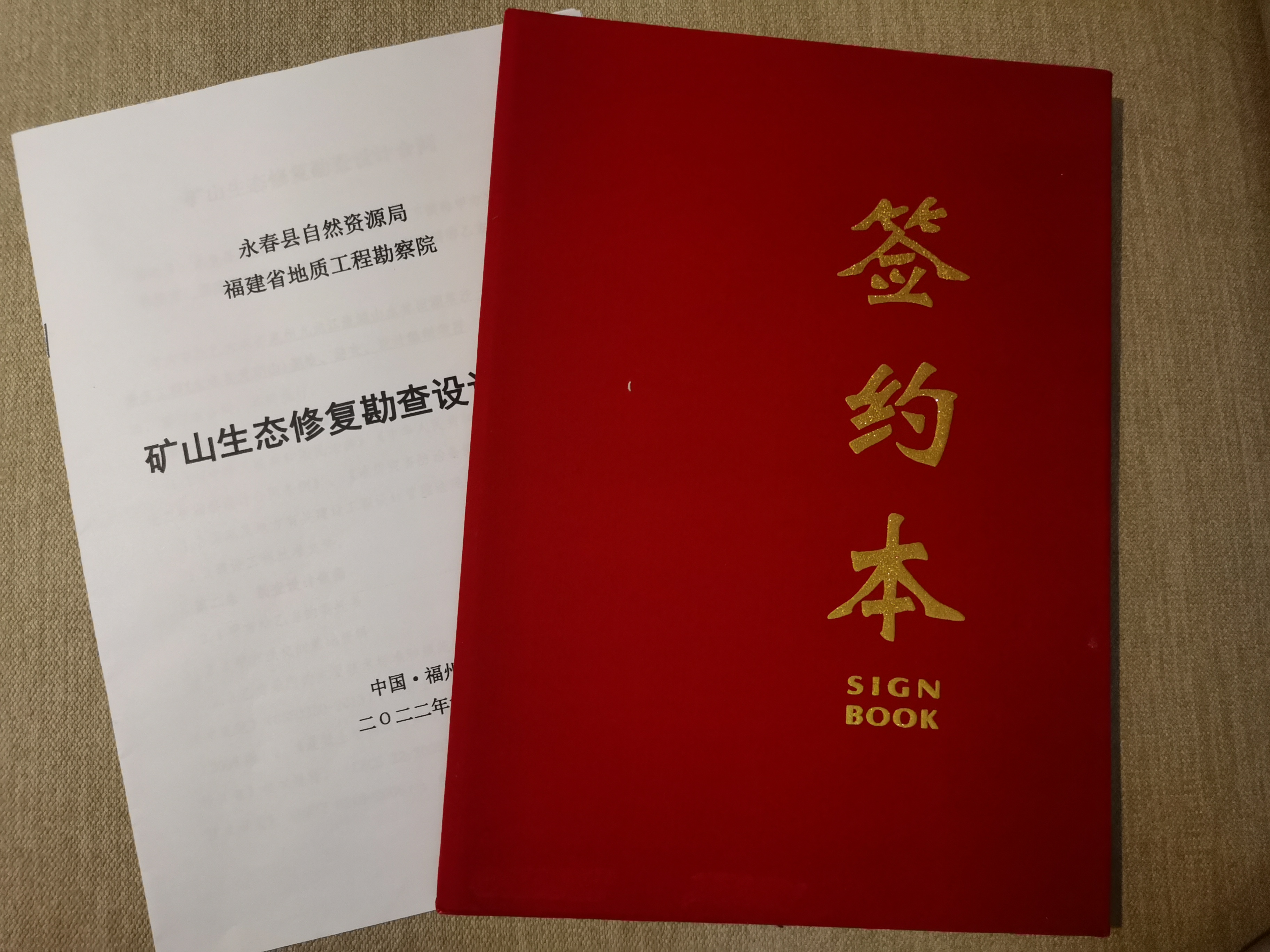 6月19日上午,在福州市海峡国际会展中心举办的福建省生态环境项目成果发布会现场,省地质工程勘察院与永春县自然资源局签订矿山生态修复勘查设计项目,省地质工程勘察院党委书记卢贤锥和永春县自然资源局副局长康海滨作为双方代表上台签约。