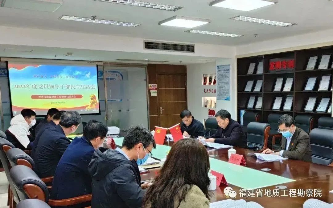 2月16日,按照省地矿局党组的部署要求,省地质工程勘察院召开2022年党员领导干部民主生活会。会议由院党委书记卢贤锥主持,省地矿局党组第五督导组组长、局二级巡视员钟厚良,局宣教处处长、一级调研员张瑞利,局监察室三级调研员叶礼荣到会指导。