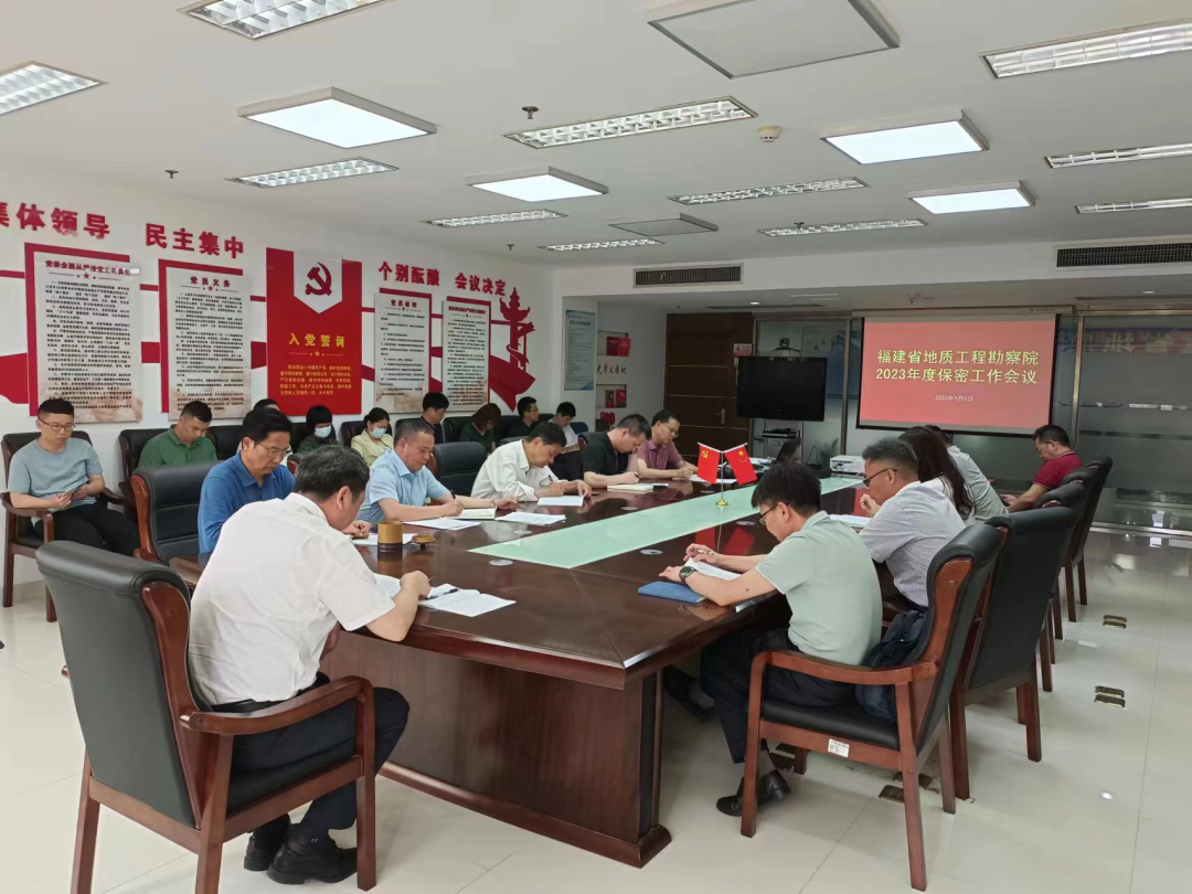 会上,副院长、总工程师柳侃作《2023年度保密工作报告》,总工办主任(兼保密办主任)邓鼎兴传达学习《福建省地矿局2023年保密工作要点》,并观看保密警示教育视频。